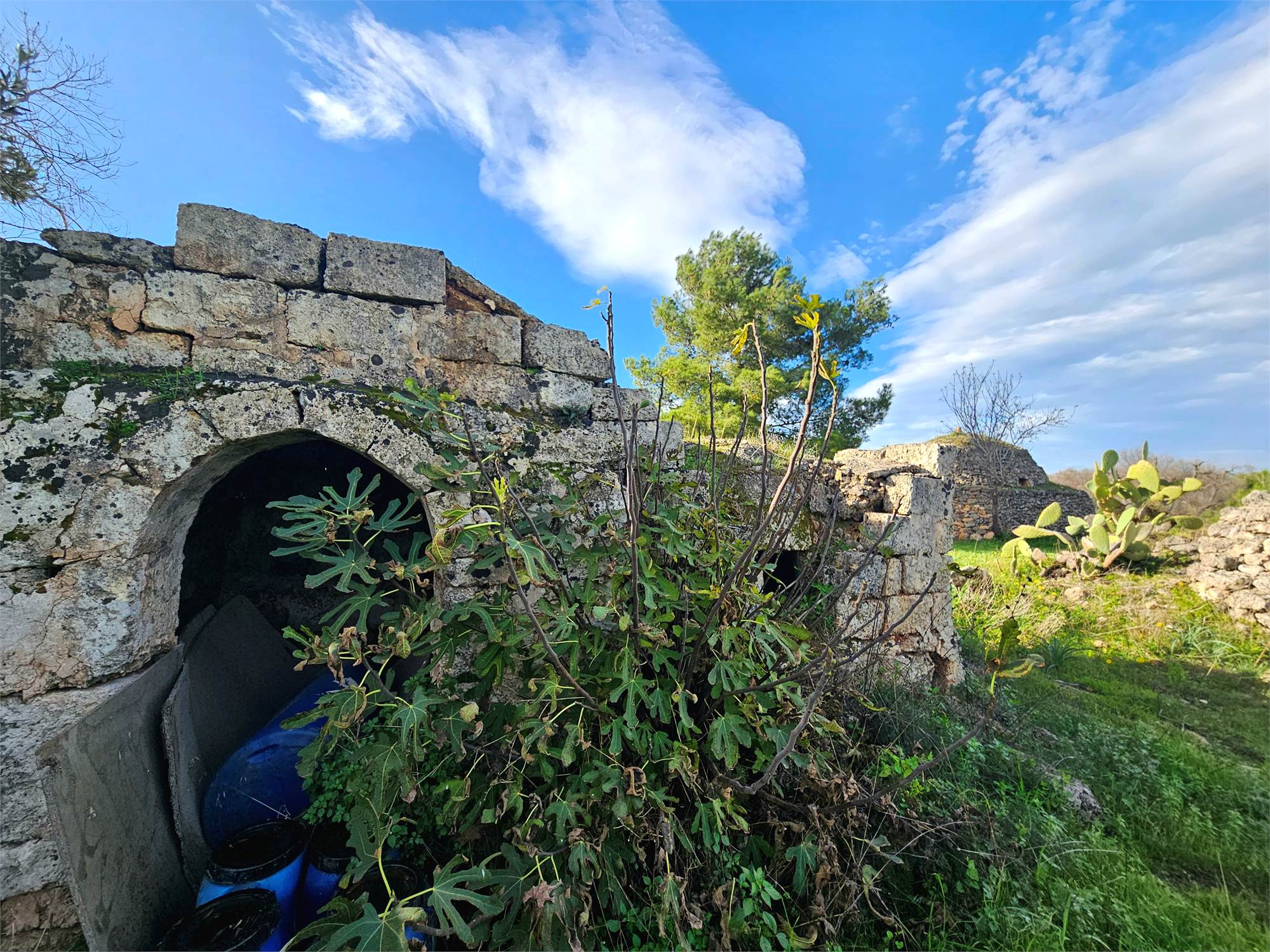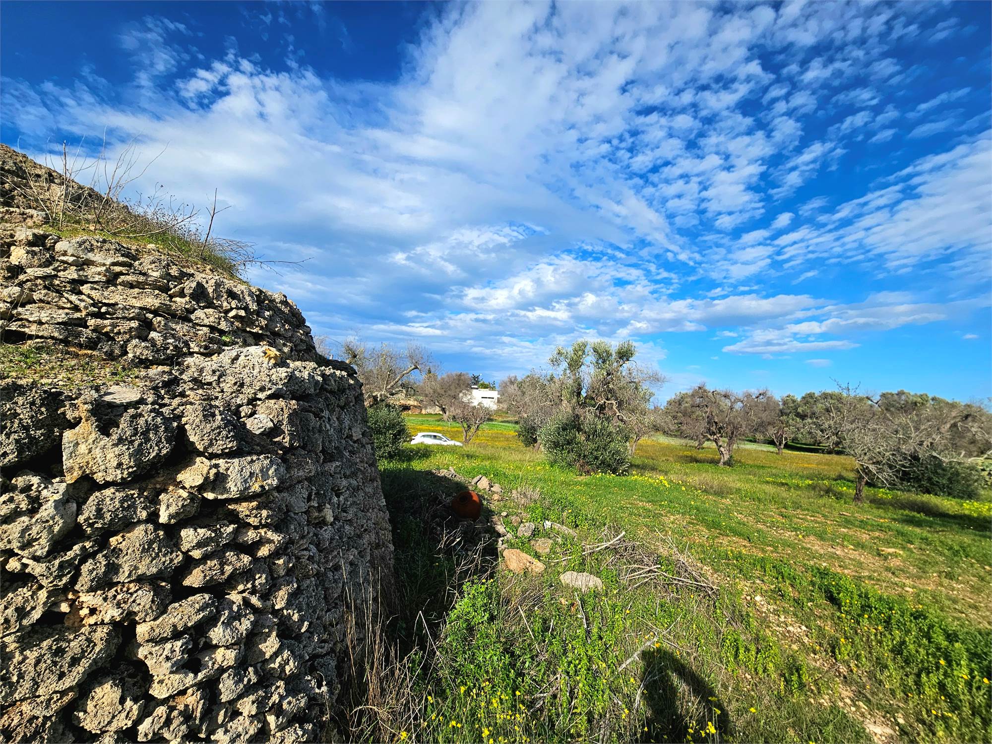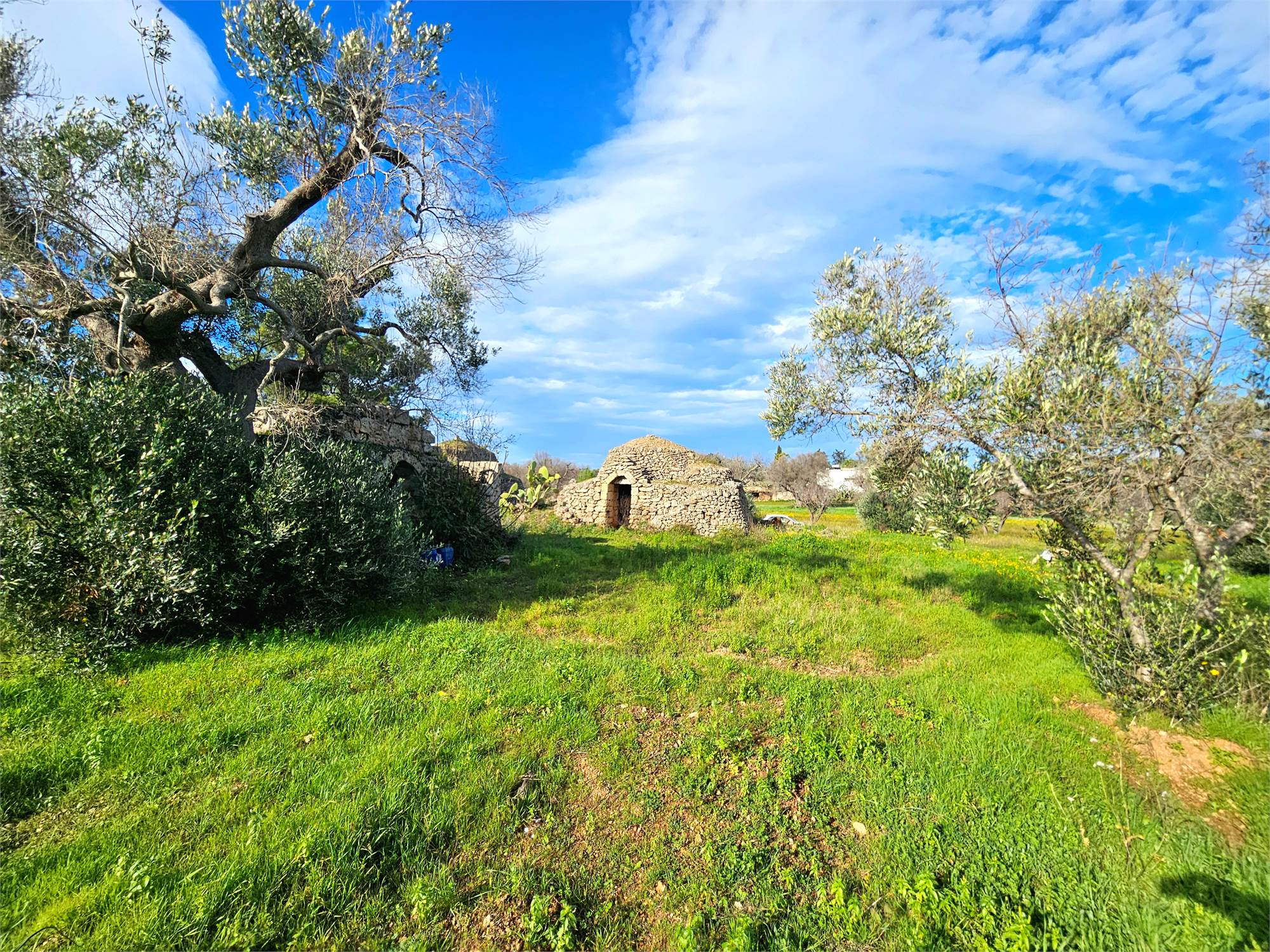 Ref. 968 VC -Sale of a plot of 8,423 sqm located in the countryside of Carovigno, in a dominant and panoramic position, featuring two small “trulli saraceni” in need of complete renovation. The land offers an open and beautiful view over the surrounding countryside, in a quiet and authentic rural setting.
