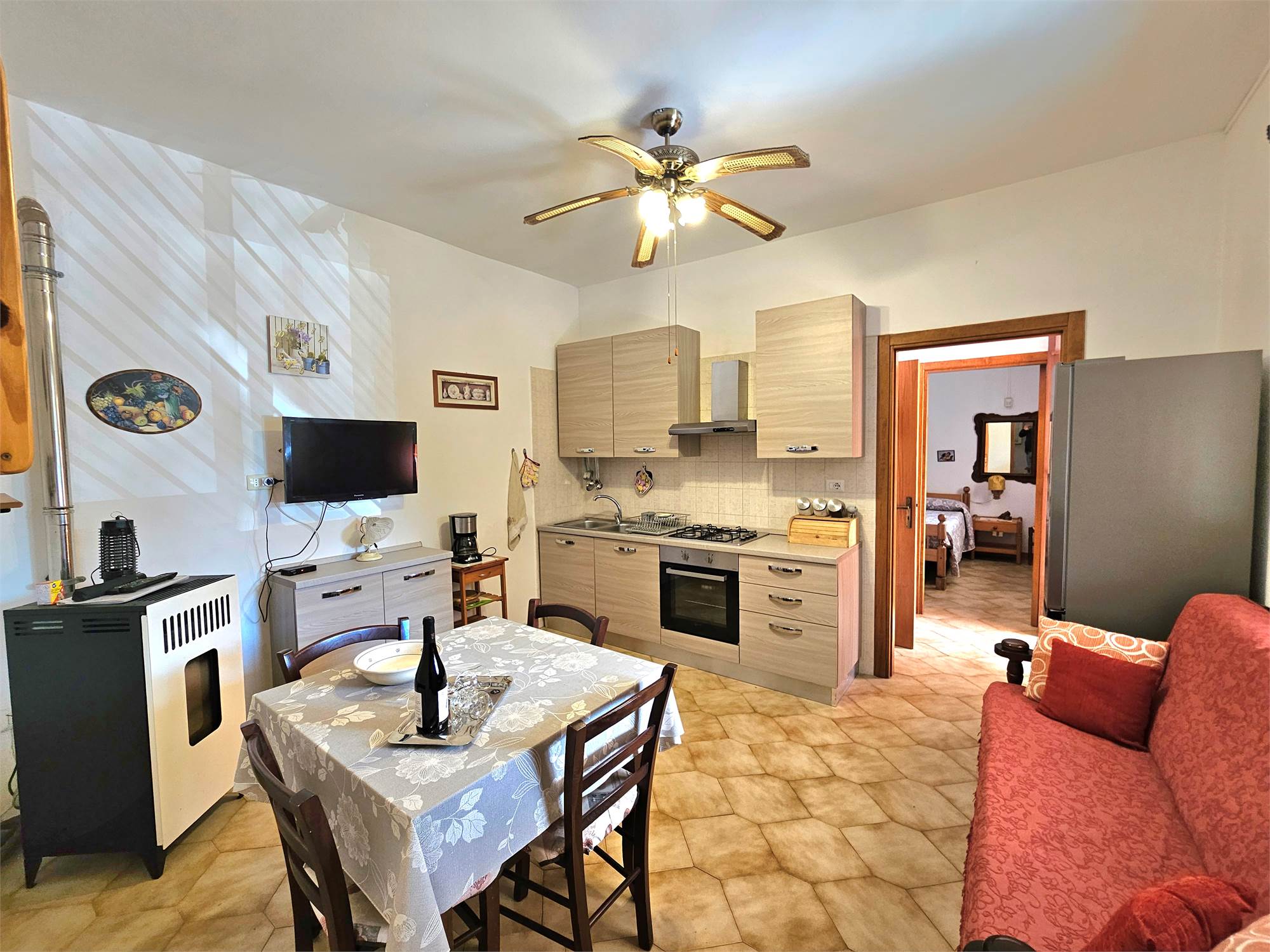 La proprietà è composta da soggiorno con angolo cottura a vista, due camere da letto, bagno con doccia e una comoda veranda antistante, ideale per momenti di relax all’aperto. Il terreno di pertinenza, completamente recintato, si estende per 2.400 mq e garantisce massima privacy e tranquillità.