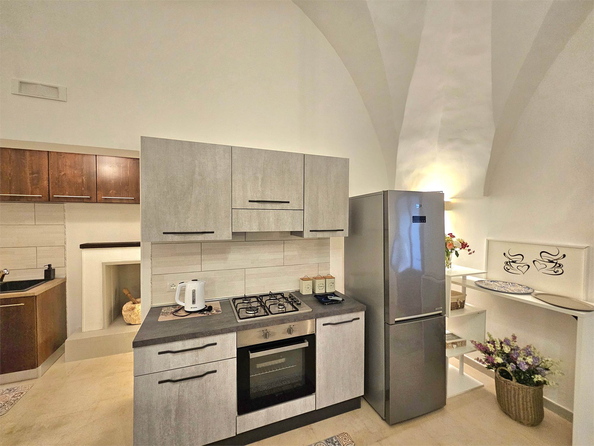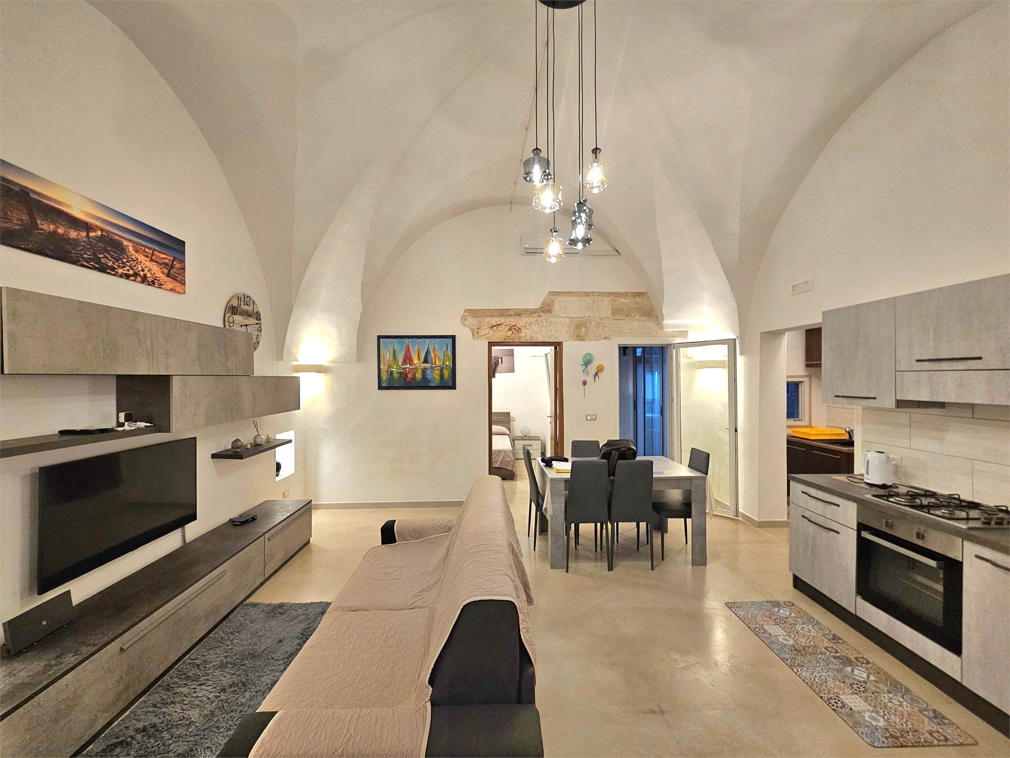 La proprietà, caratterizzata da suggestive volte, è stata completamente ristrutturata e si presenta in ottime condizioni manutentive. Gli ambienti interni sono ben distribuiti e comprendono un soggiorno con cucina a vista, cucinino separato con camino, una camera da letto, un bagno e un pozzo luce che garantisce aerazione e illuminazione naturale.